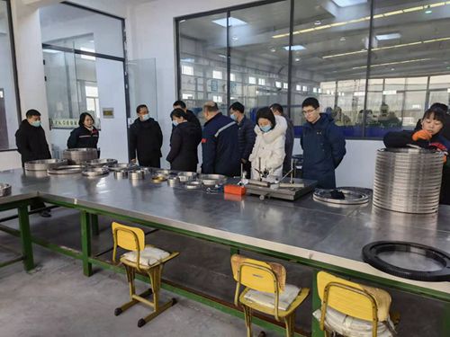 隨后,調研組成員來到生產線、檢測中心、裝配車間,了解了產品的加工工藝、生產設備、檢測手段、產品特性及應用方向等情況,做出了對中機軸承向高科技、智能化行業方向發展的肯定,希望中機軸承繼續發揮企業優勢,做好產品以及技術方面的引領,為洛陽軸承產業發展做出貢獻。